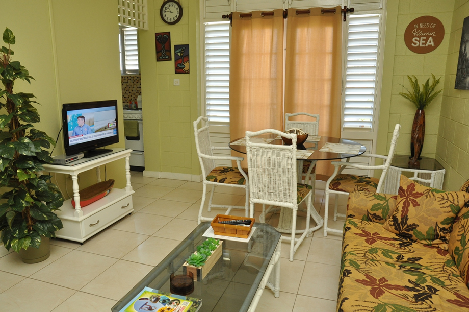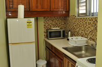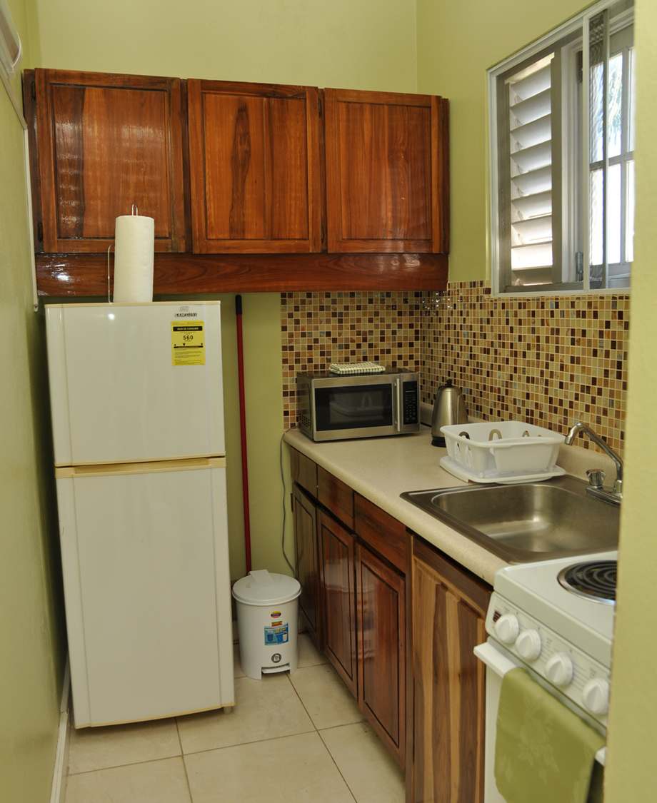 Fully equipped kitchenette including microwave, toaster, kettle, coffeemaker, blender