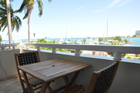 Private balcony off living room; private balcony off bedroom